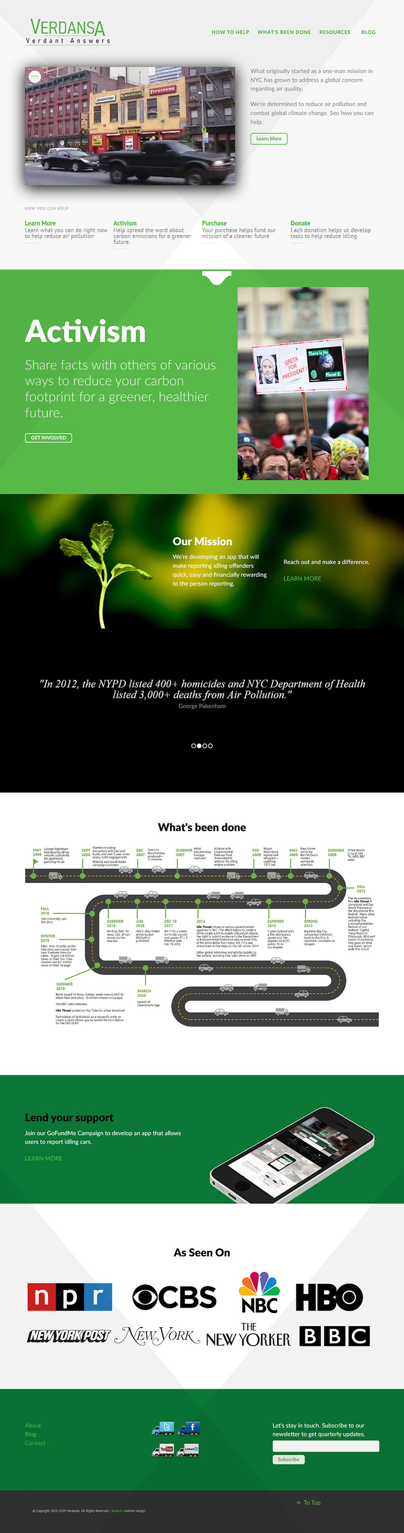 Verdansa is a nonprofit based in New York City, has been a client of studio1c's since approximately 2010. Led by passionate and determined New Yorkers, Verdansa has made exceptional strides through the years. Besides having their website, they are now working towards launching a smartphone app to report idling vehicles in NYC.